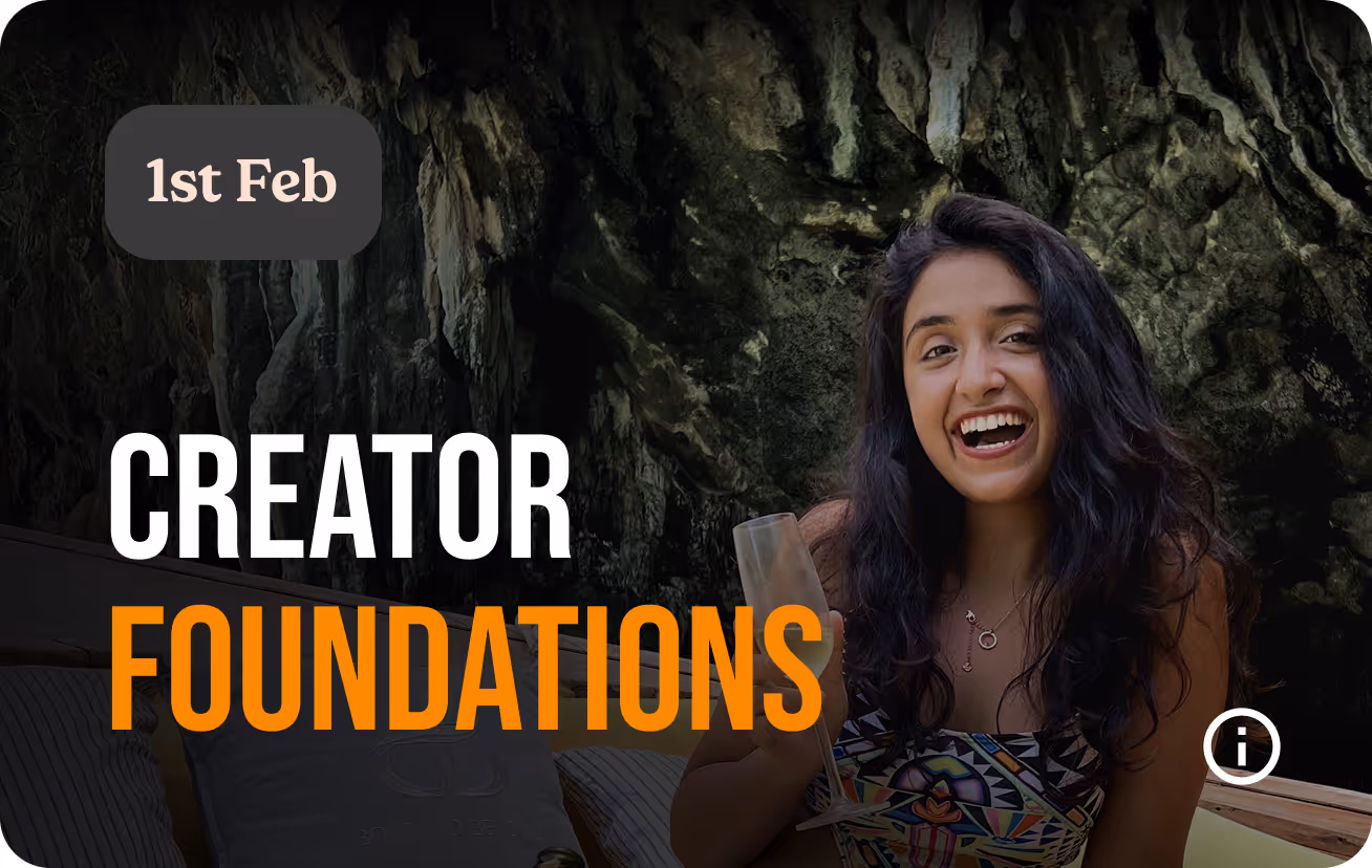 A live, step-by-step program that takes you from finding your creator niche & why to building consistent content, growth, and income - no matter where you’re starting from!