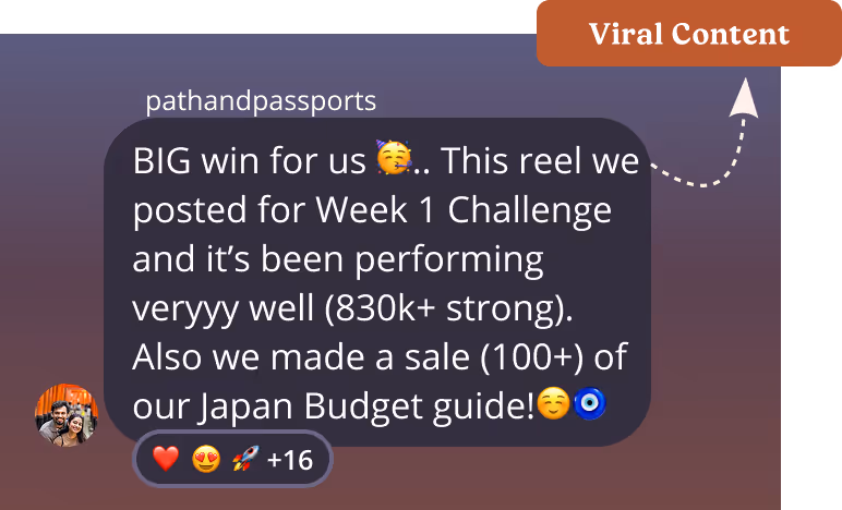 Go through structured weekly sessions designed to help you build step by step—from your first reel to monetizing your brand.